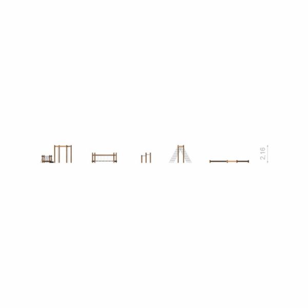 • Materiały wykonania Modrzew, Stal galwanizowana (ocynkowana ogniowo), HDPE z recyklingu, Liny zbrojone (PP-Polipropylen), PE / Plastik, Guma