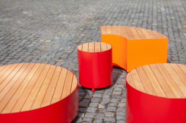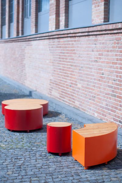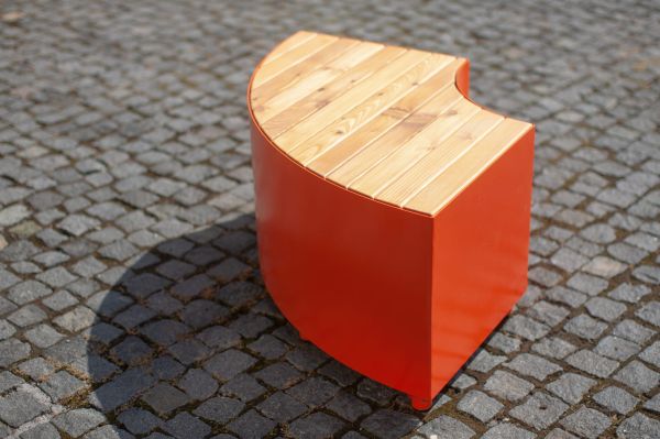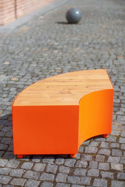 Ławka Valby bez oparcia ćwierćokrągła | stal i drewno deski prostopadłe , Mała architektura | LARS LAJ® (61705-S-L)