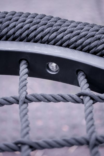 • Materiały wykonania Modrzew, Stal malowana proszkowo, Liny zbrojone (PP-Polipropylen), Liny niezbrojone (PP-Polipropylen), Łańcuch nierdzewny