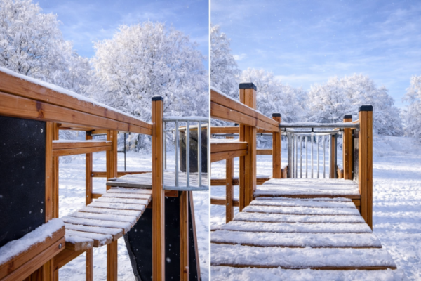• Materiały wykonania Modrzew, Stal nierdzewna, Stal galwanizowana (ocynkowana ogniowo), HDPE z recyklingu, Liny zbrojone (PP-Polipropylen), Liny niezbrojone (PP-Polipropylen), Sklejka wodoodporna antypoślizgowa, PP, PE / Plastik